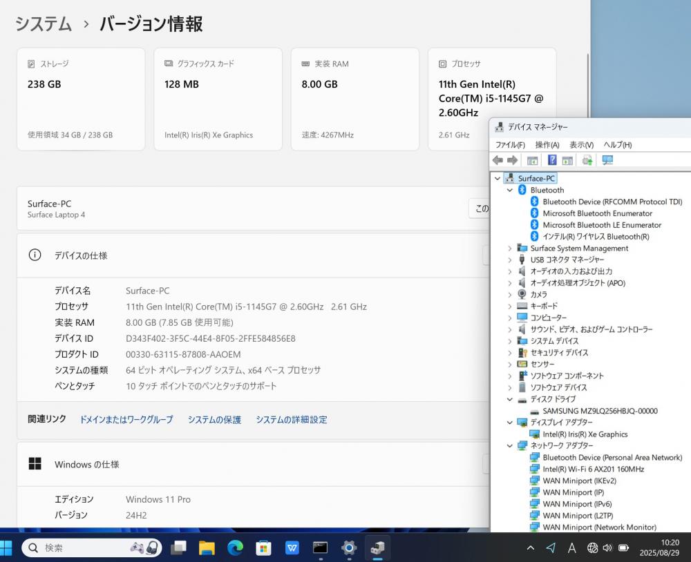 | インターフェイス: USB3.x接続口 x1個、USB Type-C接続口 x1個、 顔認証対応 Webカメラ搭載、Bluetooth搭載、 |
