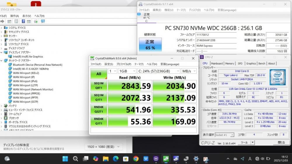 CPU:    超高速 Intel 卓越性能 第11世代Core i5-1145g7 2.6Ghz、 4コア8スレッド (ターボ・ブースト利用時の最大周波数 4.4GHz)
