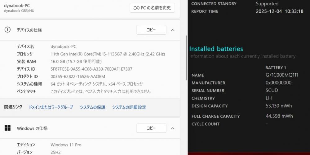 | 型番: TOSHIBA dynabook G83HU |