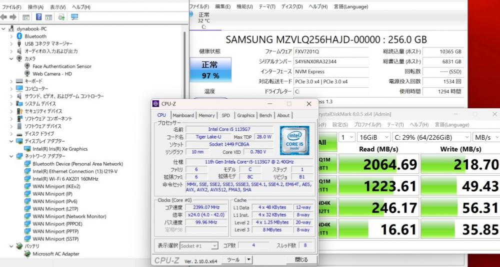 | CPU: 超高速 Intel 卓越性能 第11世代Core i5-1135G7 2.4Ghz、 4コア8スレッド (ターボ・ブースト利用時の最大周波数 4.2GHz) |