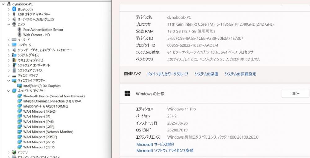 | プロダクトシール: Win11 Pro シールがあります。 |