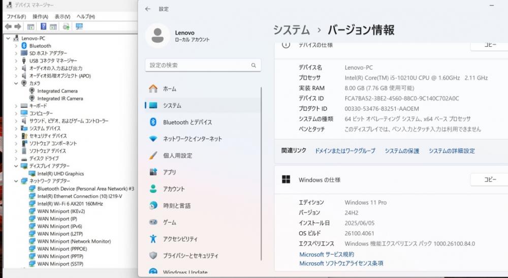 | 型番: Lenovo ThinkPad X13 Gen1 |