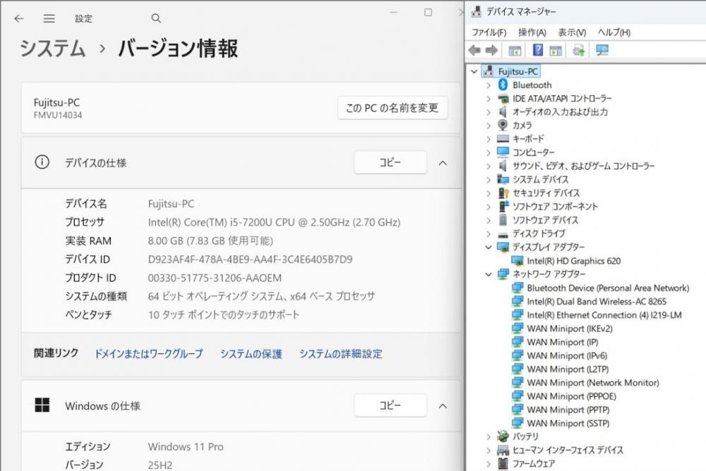 | CPU: 超高速 Intel 七世代Core i7-7200U 2.5Ghz、 (ターボ・ブースト利用時の最大周波数 3.1GHz) |