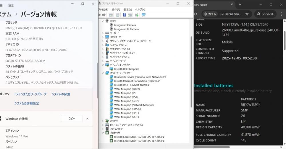 | 型番: Lenovo ThinkPad X13 Gen1 |