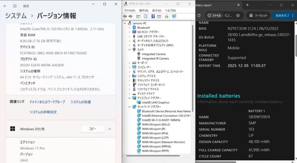 OS:      最新 Windows11 Pro 64bitアップグレード済み、Microsoft正規版 認証済み 安心使用。