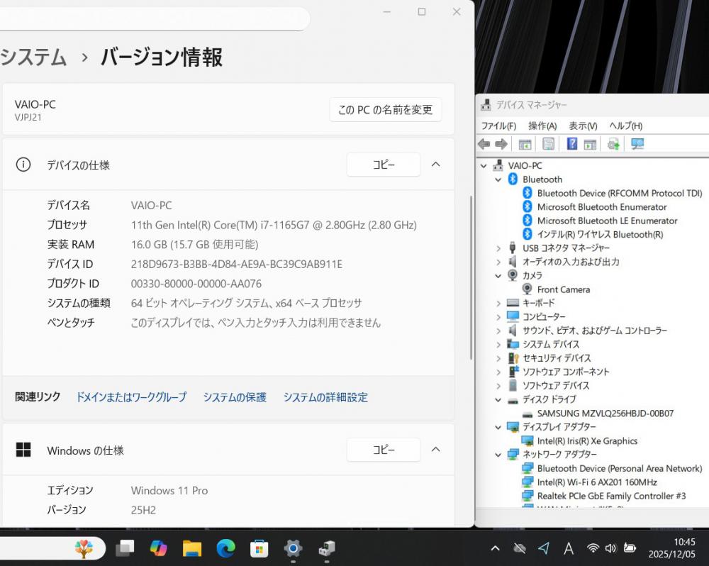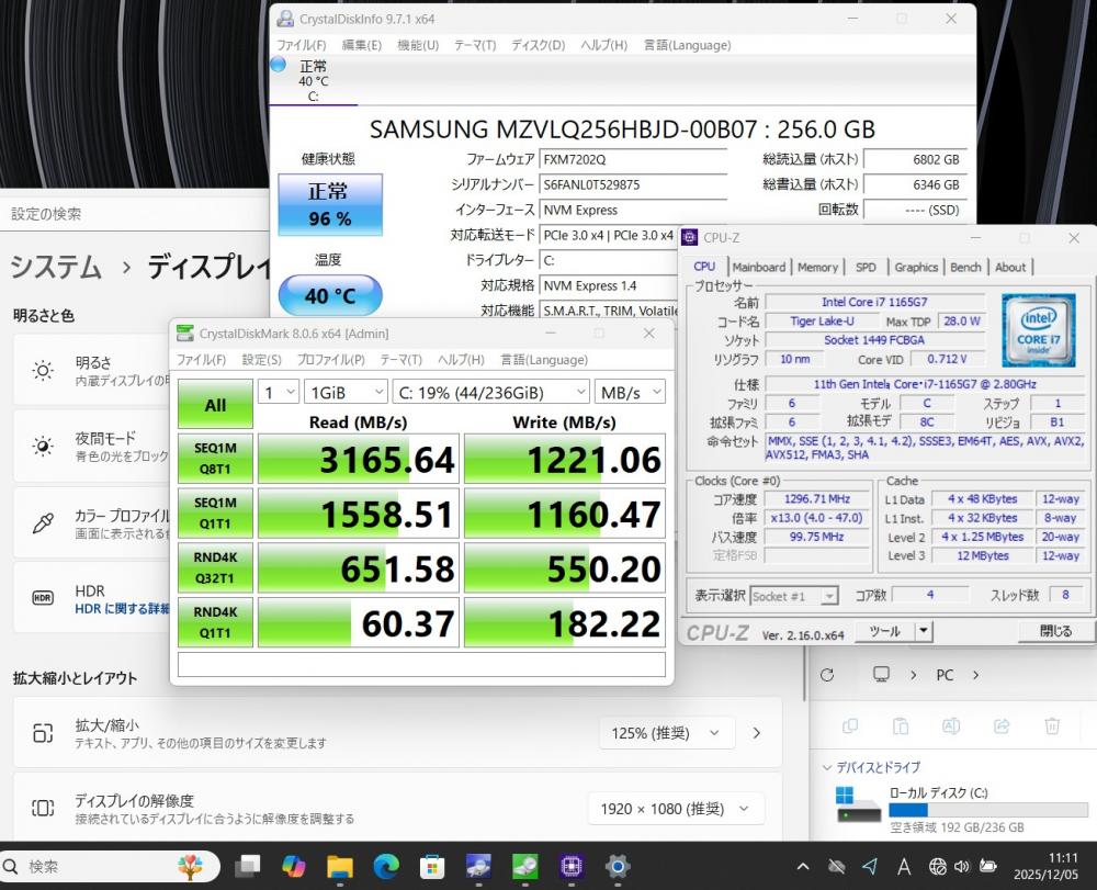 | CPU: 超高速 Intel 卓越性能 第11世代Core i7-1165G7 2.8Ghz、 4コア8スレッド (ターボ・ブースト利用時の最大周波数 4.7GHz) |