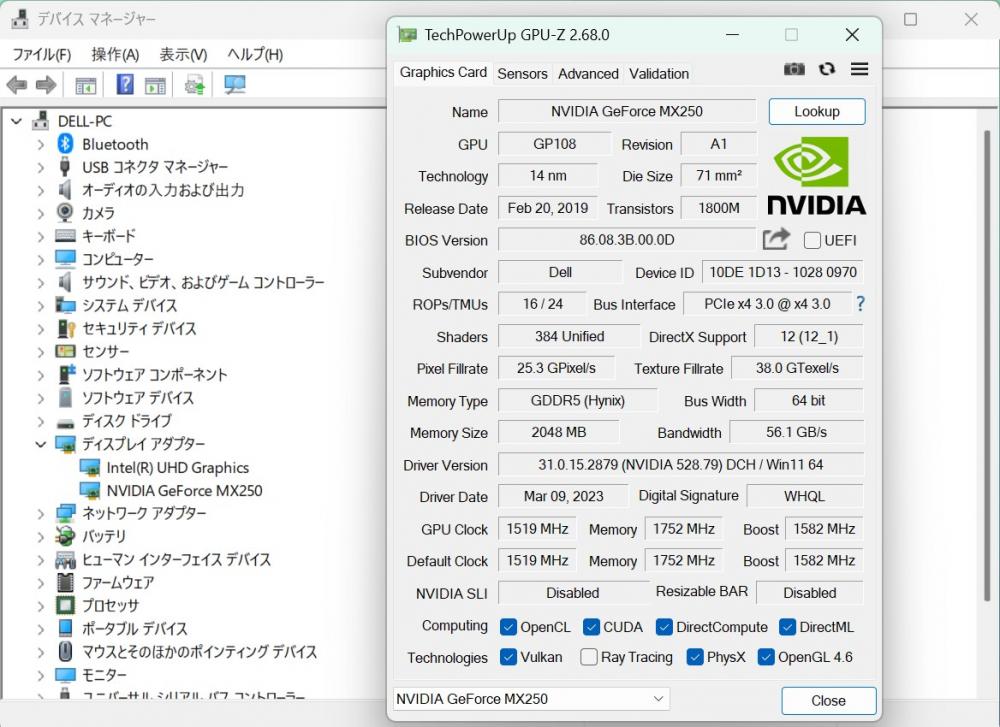 | ディスプレイ: フルHD 13.3インチ光沢液晶 高輝度 広視野角 LEDバックライト 1920 x 1080解像度 グラフィックス NVIDIA GeForce MX250 搭載、大容量 2048M専用ビデオメモリーvRAM 快適使用体験! ゲーミング性能について、GT 1030 < GeForce MX250 < GTX 650Ti |