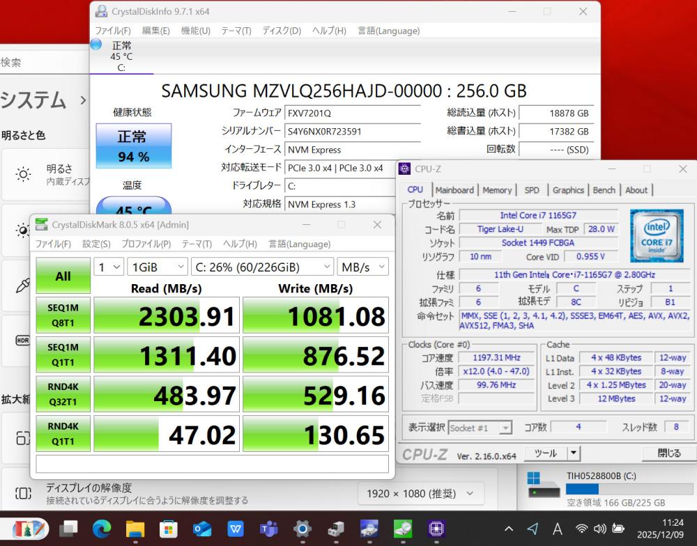 | CPU: 超高速 Intel 卓越性能 第11世代Core i7-1165G7 2.8Ghz、 4コア8スレッド (ターボ・ブースト利用時の最大周波数 4.7GHz) |