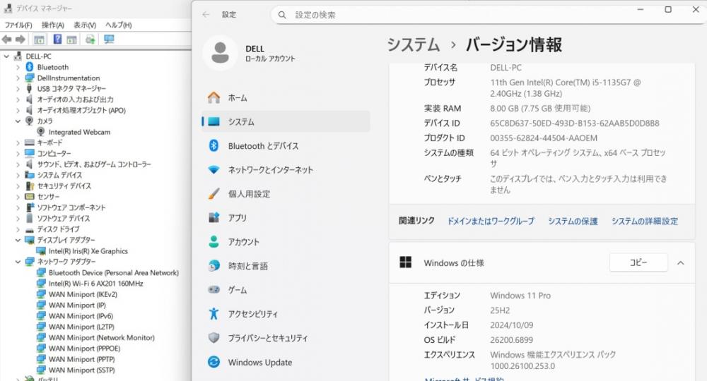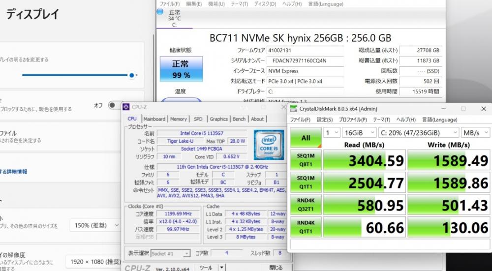 | CPU: 超高速 Intel 卓越性能 第11世代Core i5-1135G7 2.4Ghz、 4コア8スレッド (ターボ・ブースト利用時の最大周波数 4.2GHz) |