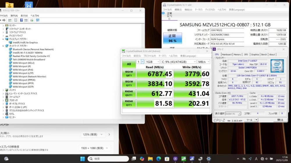 CPU:    超高速 Intel 卓越性能 第11世代Core i7-1165G7 2.8Ghz、 4コア8スレッド (ターボ・ブースト利用時の最大周波数 4.7GHz)