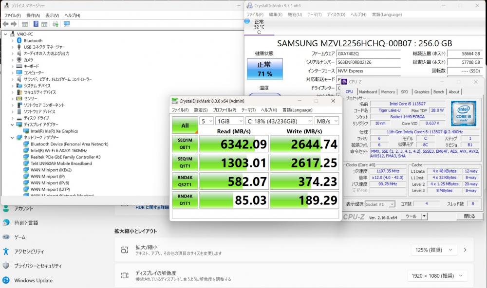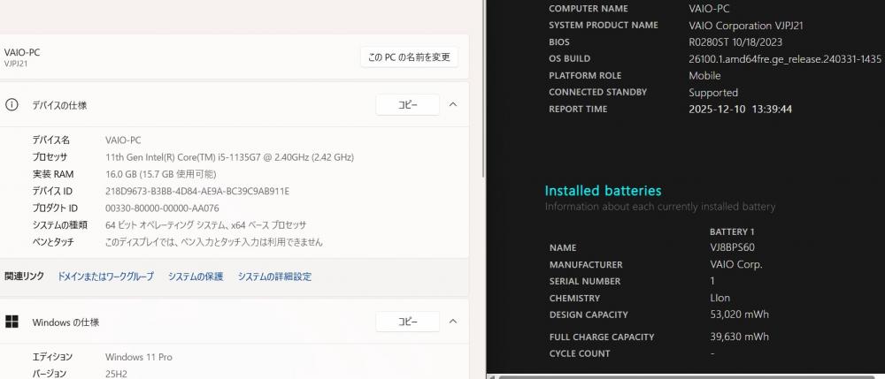 | CPU: 超高速 Intel 卓越性能 第11世代Core i5-1135G7 2.4Ghz、 4コア8スレッド (ターボ・ブースト利用時の最大周波数 4.2GHz) |