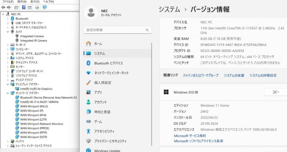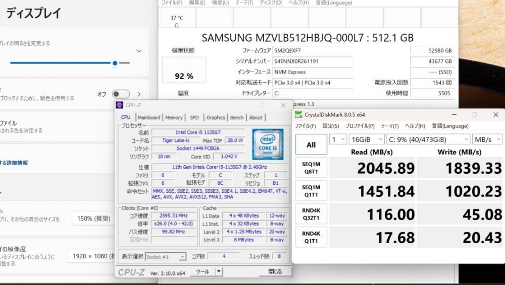 | CPU: 超高速 Intel 卓越性能 第11世代Core i5-1135G7 2.4Ghz、 4コア8スレッド (ターボ・ブースト利用時の最大周波数 4.2GHz) |