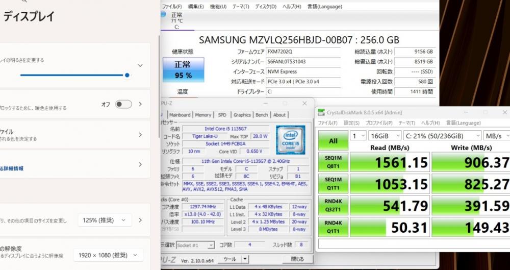 CPU:    超高速 Intel 卓越性能 第11世代Core i5-1135G7 2.4Ghz、 4コア8スレッド (ターボ・ブースト利用時の最大周波数 4.2GHz)