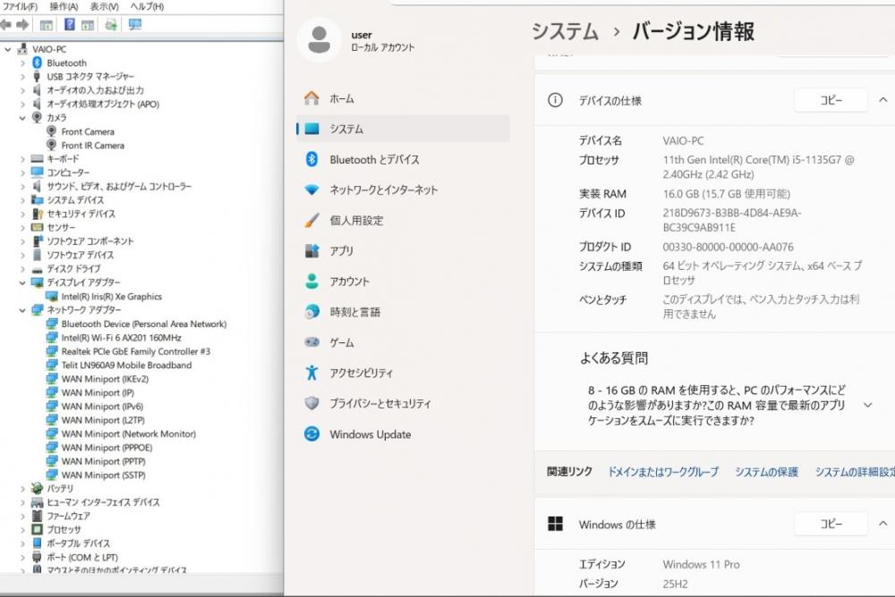 中古美品 フルHD 12.5型 SONY VAIO VJPJ218 Windows11 第11世代 i5-1135G7 16GB NVMe 256GB-SSD カメラ LTE 無線Wi-Fi6 Office付き 中古パソコン 管:1617s