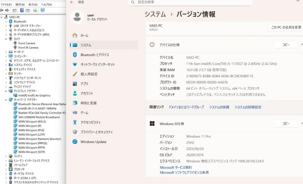 | プロダクトシール: Win11 Pro シールがあります。 |