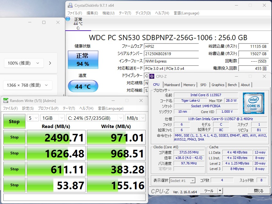 CPU:    超高速 Intel 卓越性能 第11世代Core i5-1135G7 2.4Ghz、 4コア8スレッド (ターボ・ブースト利用時の最大周波数 4.2GHz)