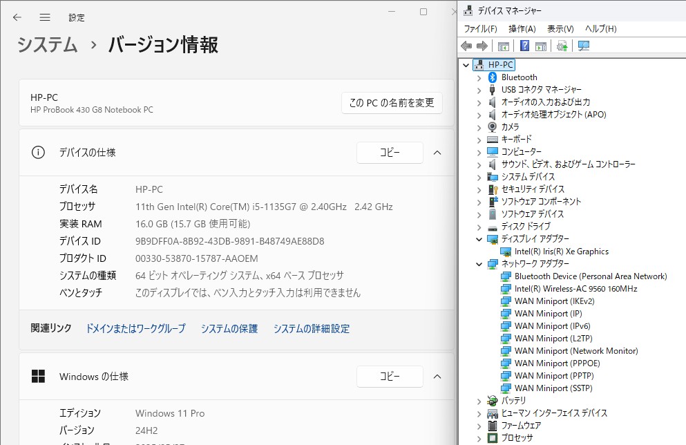 中古 13.3型 HP ProBook 430G8 Windows11 第11世代 i5-1135G7 16GB NVMe 256GB-SSD カメラ 無線 Office付き 中古パソコン 税無 管:1044v