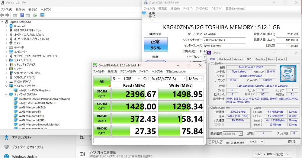 | CPU: 超高速 Intel 卓越性能 第11世代Core i7-1165G7 2.8Ghz、 4コア8スレッド (ターボ・ブースト利用時の最大周波数 4.7GHz) |