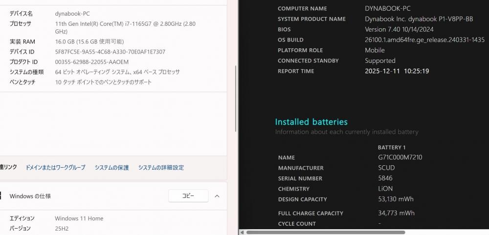 | 型番: TOSHIBA dynabook P1-V8PP-BB |