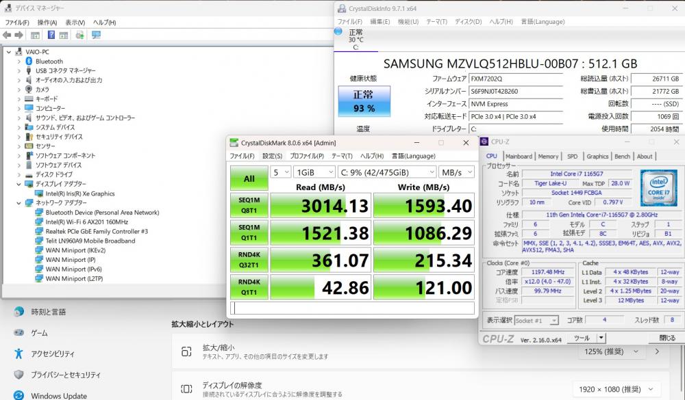 CPU:    超高速 Intel 卓越性能 第11世代Core i7-1165G7 2.8Ghz、 4コア8スレッド (ターボ・ブースト利用時の最大周波数 4.7GHz)