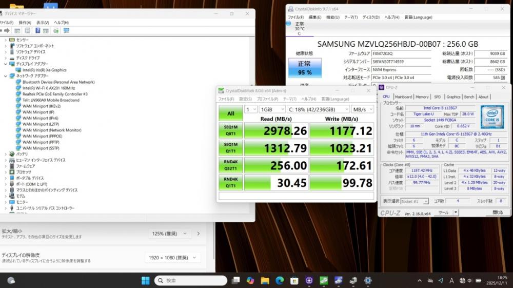 | CPU: 超高速 Intel 卓越性能 第11世代Core i5-1135G7 2.4Ghz、 4コア8スレッド (ターボ・ブースト利用時の最大周波数 4.2GHz) |