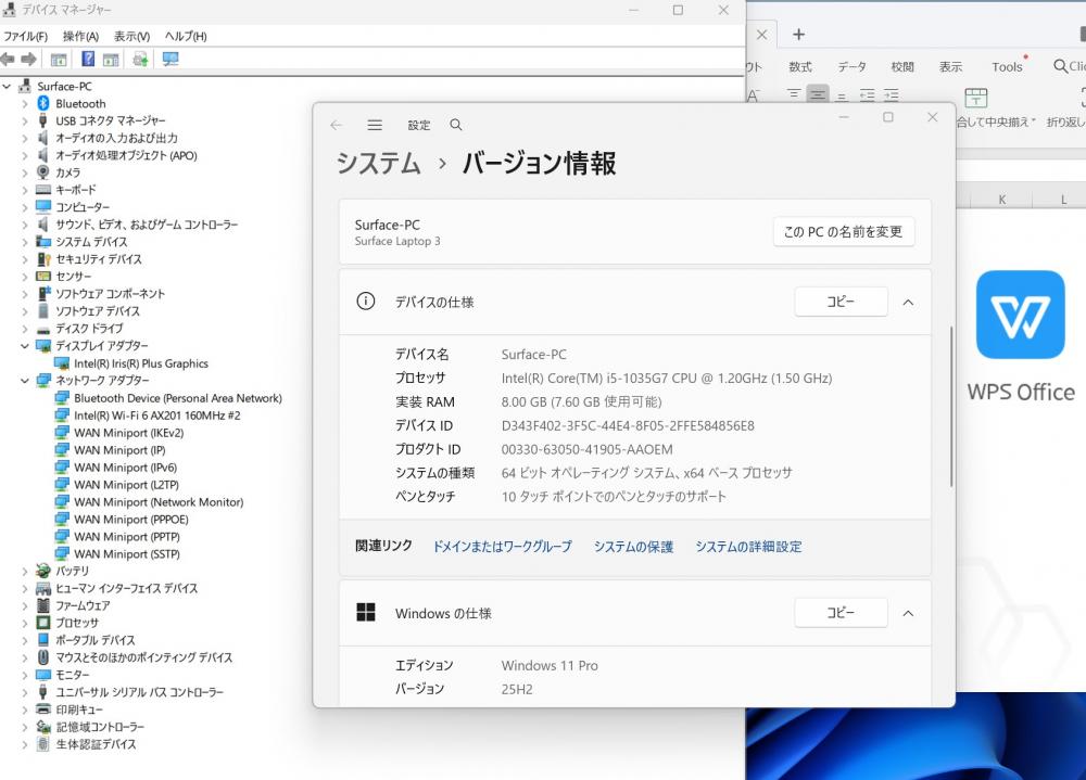 CPU:    超高速 Intel 超高性能 第10世代Core i5-1035G7 1.2Ghz、 4コア8スレッド (ターボ・ブースト利用時の最大周波数 3.7GHz)