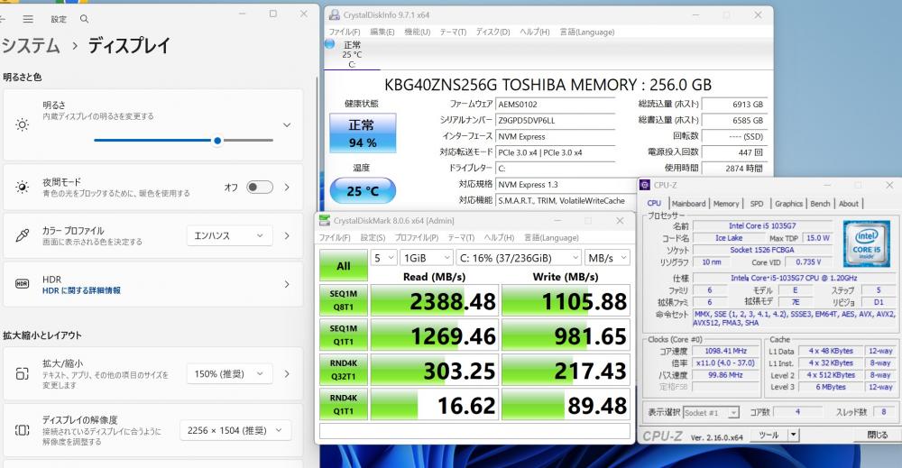 ハードディスク:  爆速NVMe式 SSD 256GB超高速ドライブを搭載  静かで耐衝撃性に優れ、OSやプログラムなどのソフトの起動速度が大幅に高速化します!!