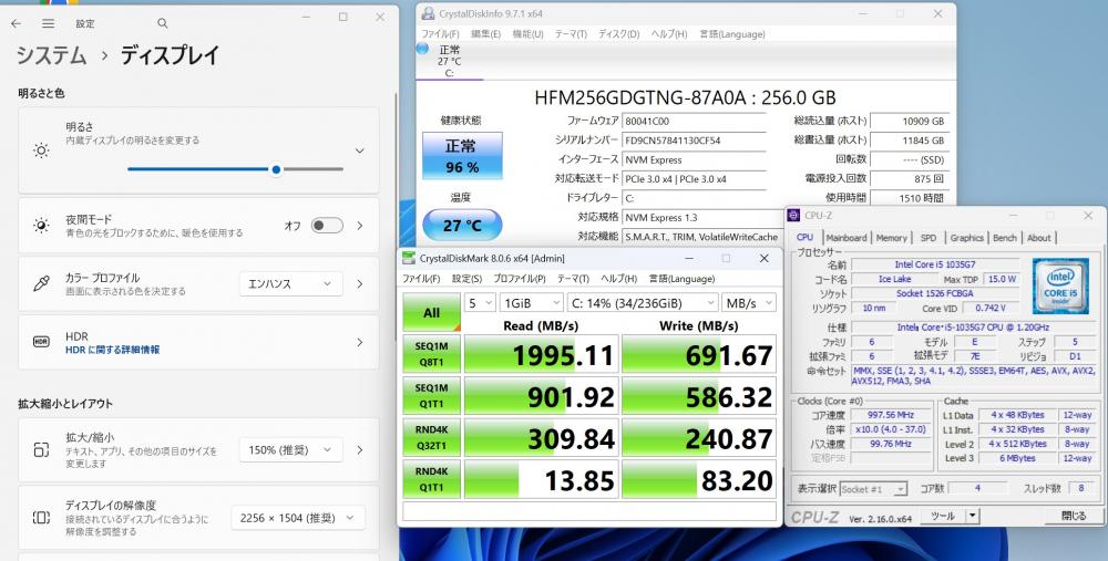 CPU:    超高速 Intel 超高性能 第10世代Core i5-1035G7 1.2Ghz、 4コア8スレッド (ターボ・ブースト利用時の最大周波数 3.7GHz)