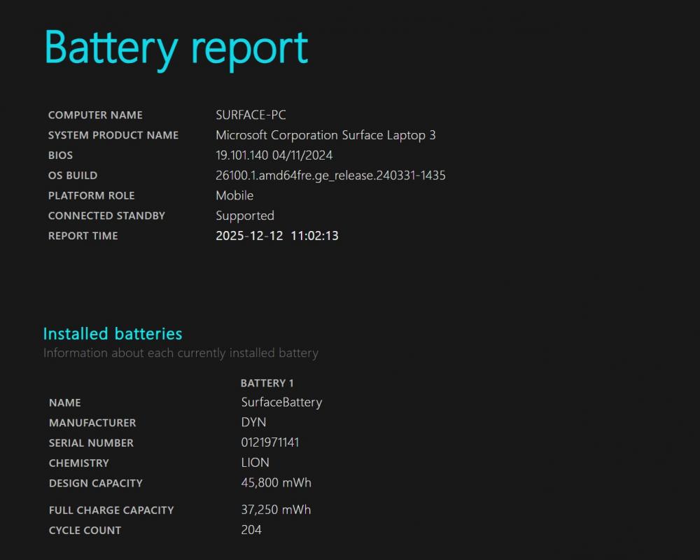 バッテリー電池の健康度は 81% です。3時間位も使用可能と表示されている。 バッテリーは消耗品の為、動作補償外となります。