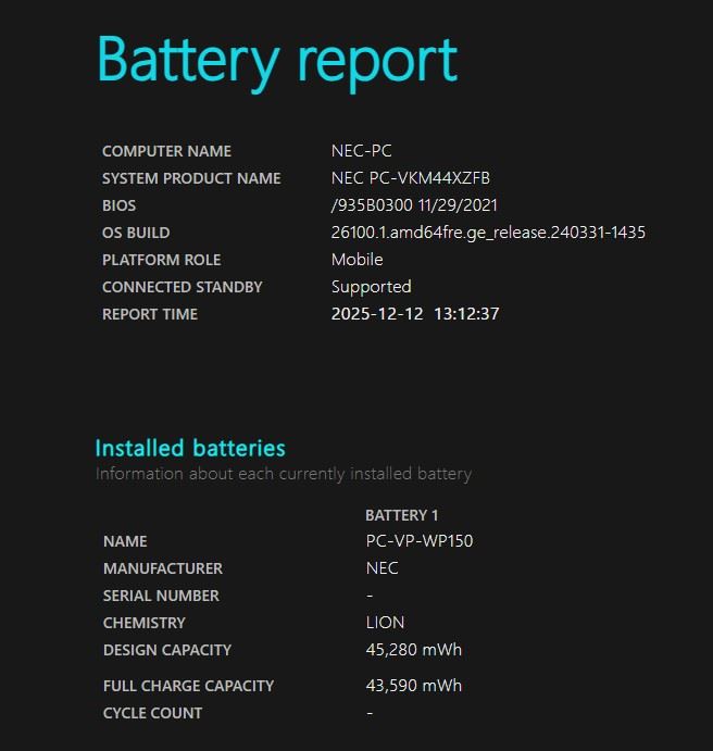 バッテリー電池の健康度は 96% です。4時間半位も使用可能と表示されている。 バッテリーは消耗品の為、動作補償外となります。
