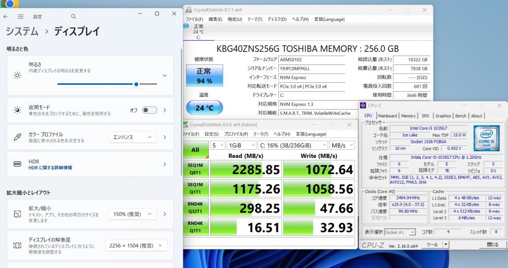 CPU:    超高速 Intel 超高性能 第10世代Core i5-1035G7 1.2Ghz、 4コア8スレッド (ターボ・ブースト利用時の最大周波数 3.7GHz)