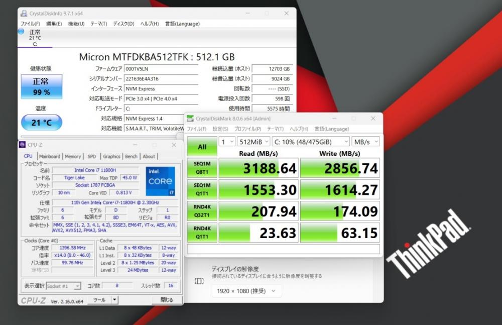 | CPU: 超高速 Intel 8コア 卓越性能 第11世代Core i7-11800H 2.3Ghz、 8コア16スレッド (ターボ・ブースト利用時の最大周波数 4.6GHz) |