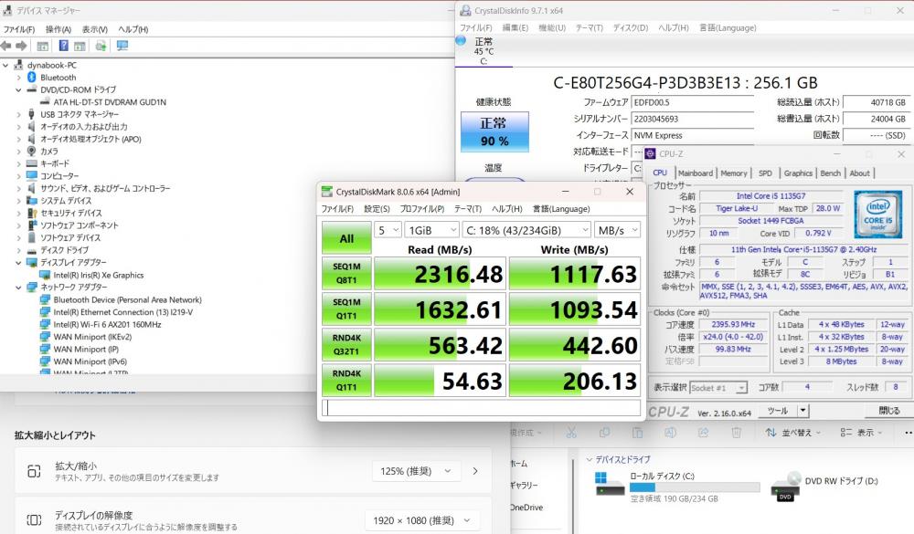 | CPU: 超高速 Intel 卓越性能 第11世代Core i5-1135G7 2.4Ghz、 4コア8スレッド (ターボ・ブースト利用時の最大周波数 4.2GHz) |
