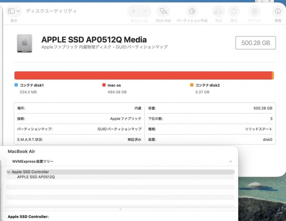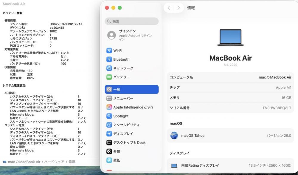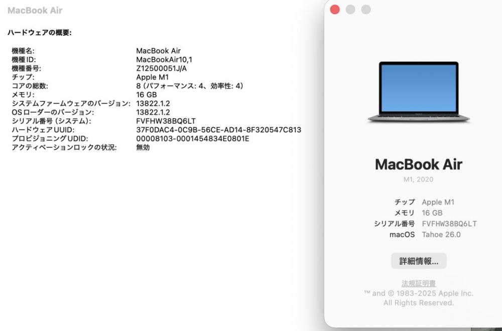 中古良品 2K対応 13.3型 Apple MacBook Air A2337 (2020年式) グレー macOS 26 Tahoe  8コア 卓越性能Apple-M1 16GB NVMe 512GB-SSD カメラ 無線Wi-Fi6 中古パソコン 管:1735h