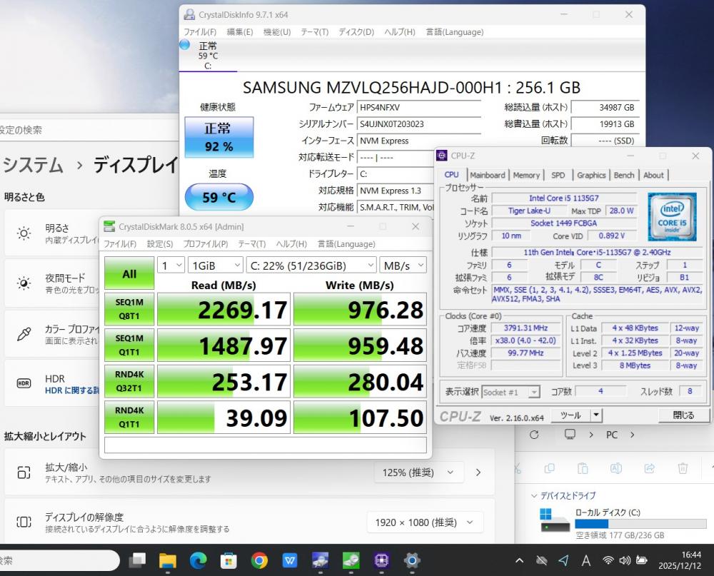 | CPU: 超高速 Intel 卓越性能 第11世代Core i5-1135G7 2.4Ghz、 4コア8スレッド (ターボ・ブースト利用時の最大周波数 4.2GHz) |