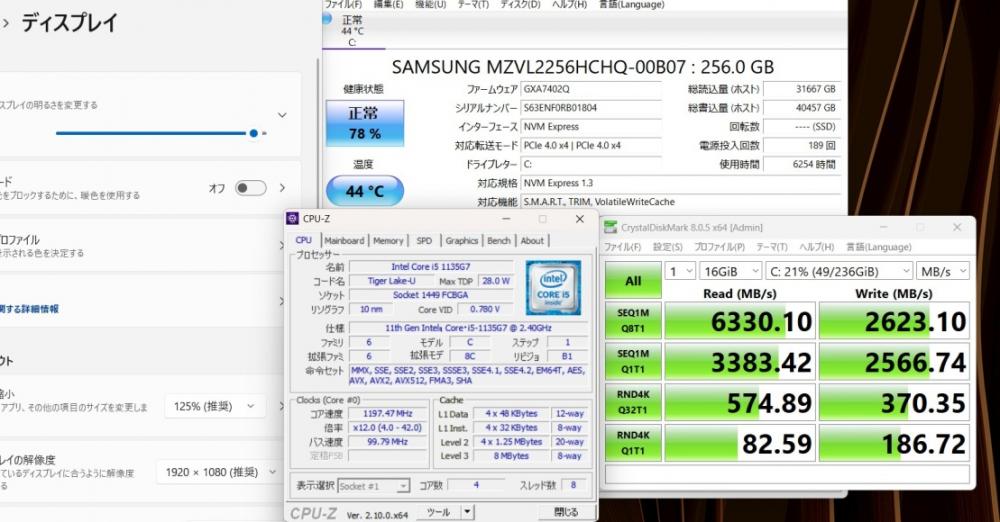 CPU:    超高速 Intel 卓越性能 第11世代Core i5-1135G7 2.4Ghz、 4コア8スレッド (ターボ・ブースト利用時の最大周波数 4.2GHz)