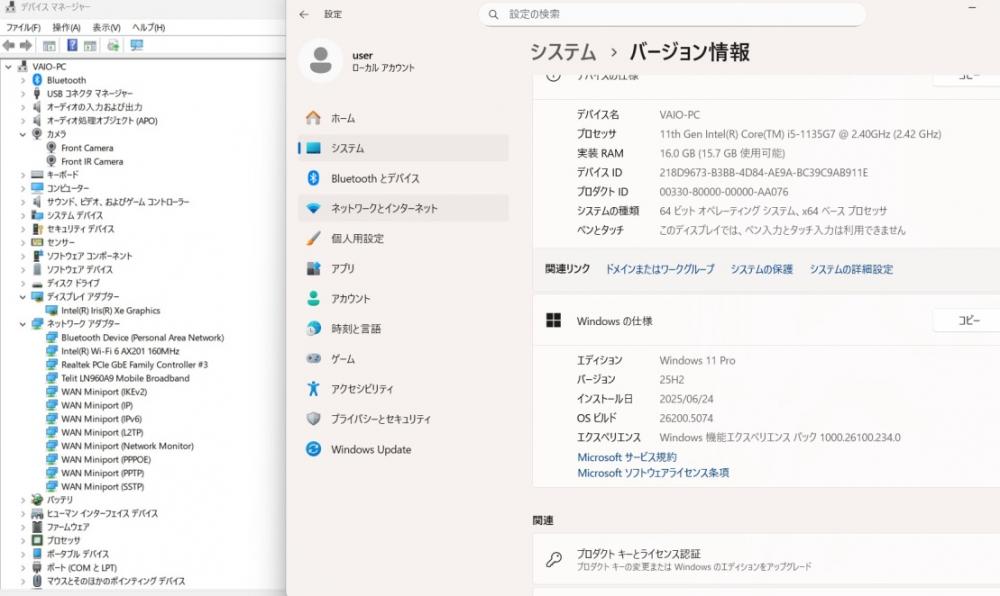 良品 フルHD 12.5型 SONY VAIO VJPJ211 Windows11 第11世代 i5-1135G7 16GB NVMe 256GB-SSD カメラ LTE 無線Wi-Fi6 Office付き 中古パソコン 管:1543s