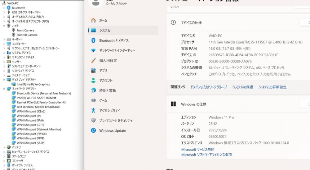 使用332時間 美品 フルHD 12.5型 SONY VAIO VJPJ211 Windows11 第11世代 i5-1135G7 16GB NVMe 256GB-SSD カメラ LTE 無線Wi-Fi6 Office付き 中古パソコン 管:1626s
