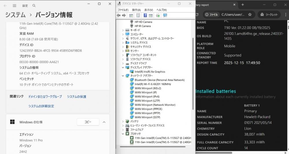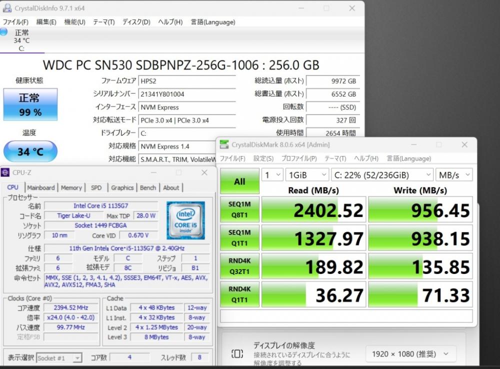 | CPU: 超高速 Intel 卓越性能 第11世代Core i5-1135G7 2.4Ghz、 4コア8スレッド (ターボ・ブースト利用時の最大周波数 4.2GHz) |