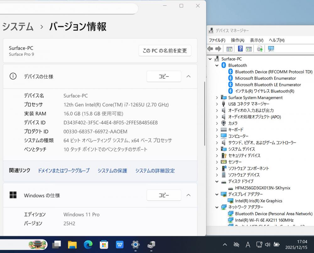 | 型番: マイクロソフト Surface Pro9 (Wi-Fi) |