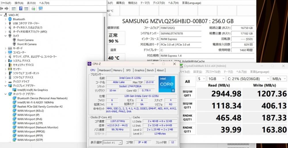 CPU:    超高速 Intel 10コア 卓越性能 第12世代Core i5-1235u 1.3Ghz、 10コア12スレッド (ターボ・ブースト利用時の最大周波数 4.4GHz)