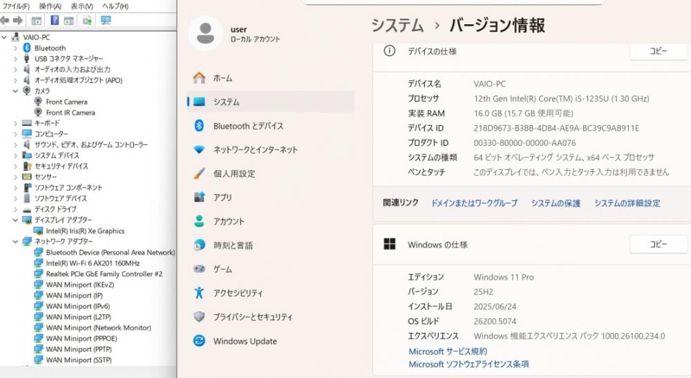 中古良品 フルHD 13.3型 SONY ProPG VJPG214 Windows11 10コア 第12世代 i5-1235u 16GB NVMe 256GB-SSD カメラ 無線Wi-Fi6 Office付き 中古パソコン 管:1309s
