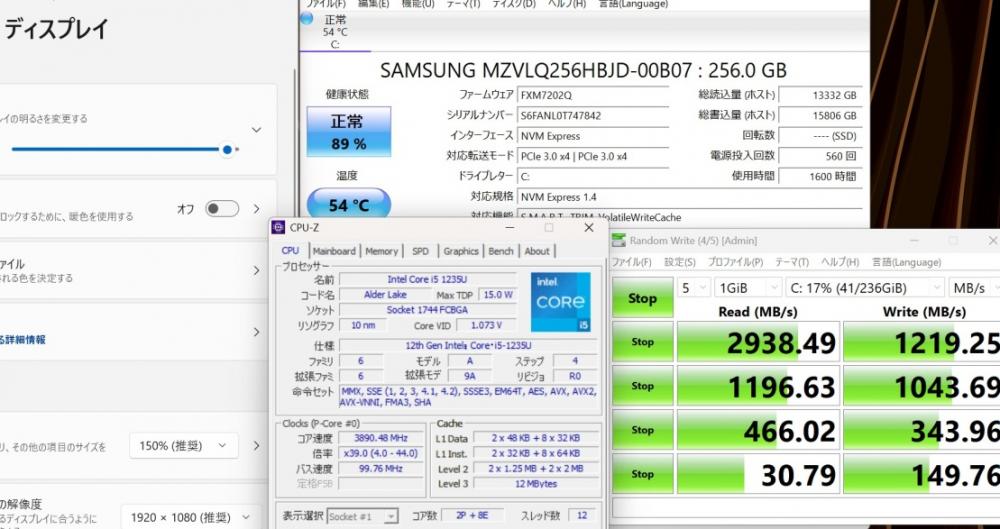| CPU: 超高速 Intel 10コア 卓越性能 第12世代Core i5-1235u 1.3Ghz、 10コア12スレッド (ターボ・ブースト利用時の最大周波数 4.4GHz) |