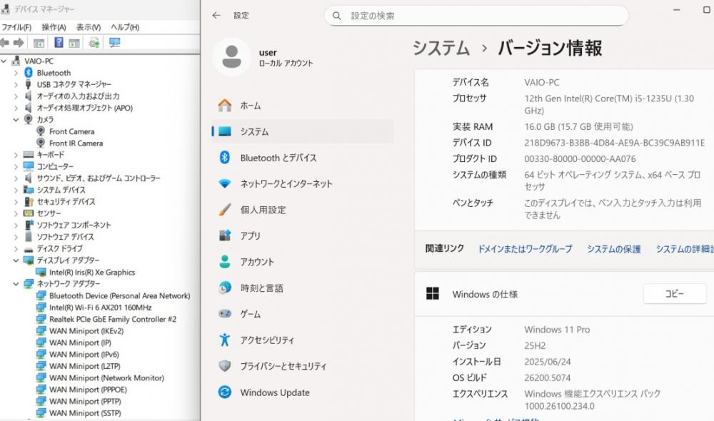 中古 フルHD 13.3型 SONY ProPG VJPG214 Windows11 10コア 第12世代 i5-1235u 16GB NVMe 256GB-SSD カメラ 無線Wi-Fi6 Office付き 中古パソコン 管:1746s