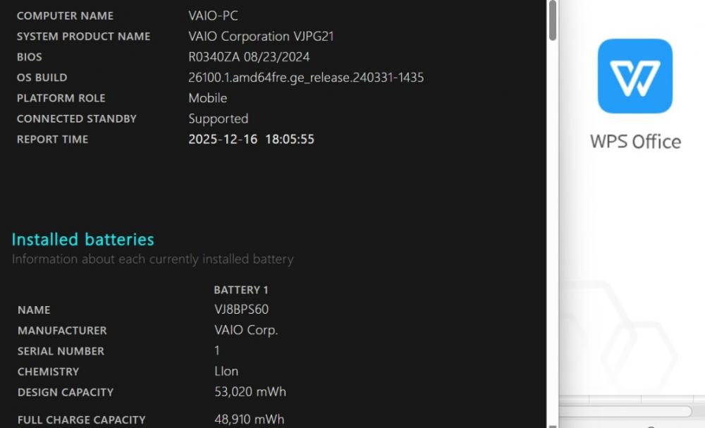 バッテリー電池の健康度は 92% です。4時間位も使用可能と表示されている。 バッテリーは消耗品の為、動作補償外となります。