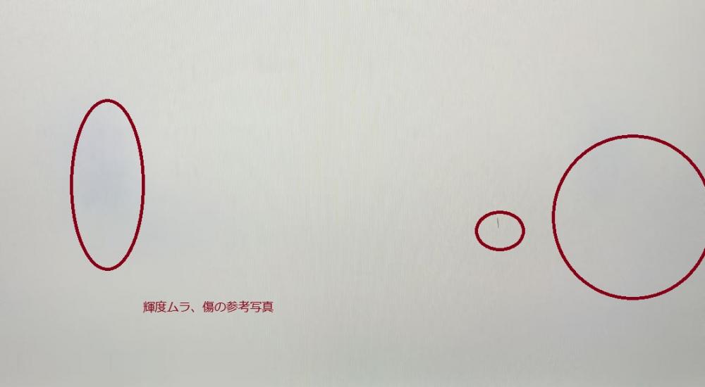 液晶少しキーボード跡、写真示す通り輝度ムラ、液晶の枠に破損があります。