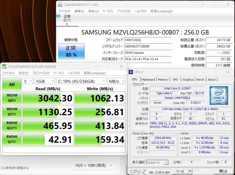 | CPU: 超高速 Intel 卓越性能 第11世代Core i5-1135G7 2.4Ghz、 4コア8スレッド (ターボ・ブースト利用時の最大周波数 4.2GHz) |