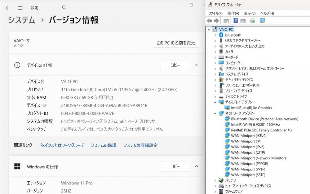 | 型番: SONY VAIO Pro PJ VJPJ21 |