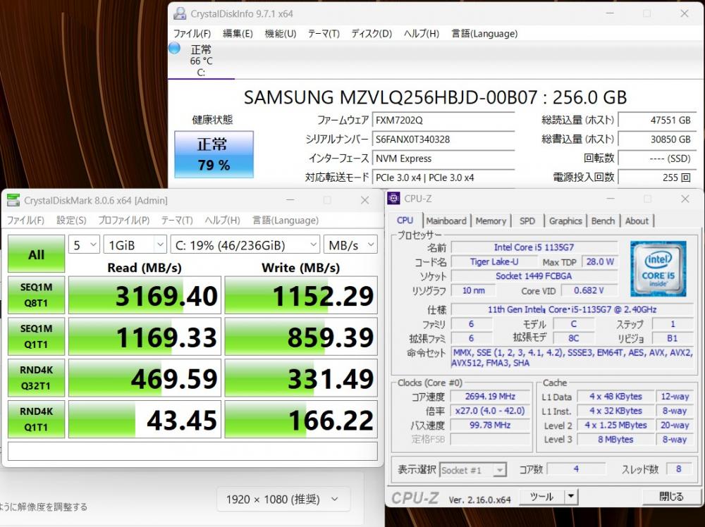 | CPU: 超高速 Intel 卓越性能 第11世代Core i5-1135G7 2.4Ghz、 4コア8スレッド (ターボ・ブースト利用時の最大周波数 4.2GHz) |