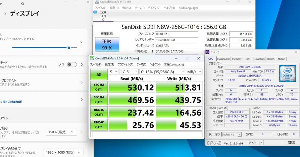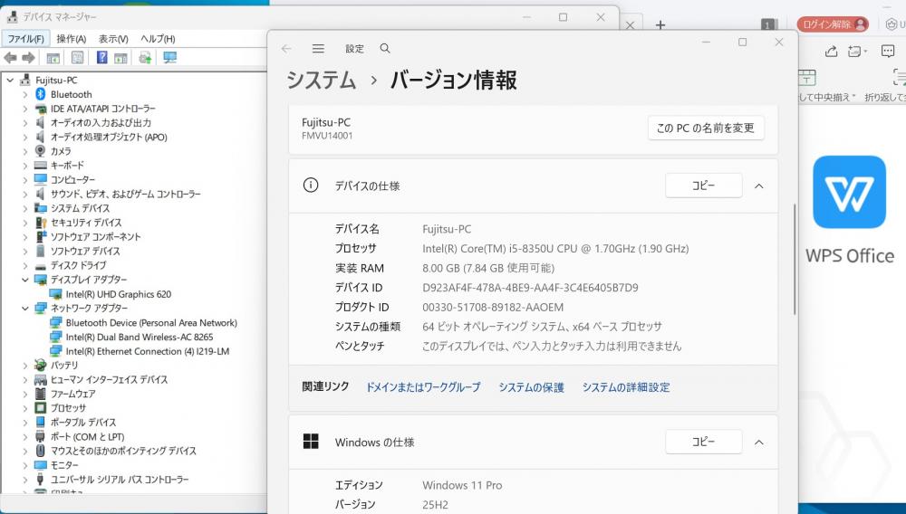 | CPU: 超高速 Intel 高性能 第8世代Core i5-8350u 1.7Ghz、 4コア8スレッド (ターボ・ブースト利用時の最大周波数 3.6GHz) |